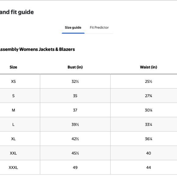 Size Chest Waist Hips 2XS 32 26 32 XS 34 28 34 S 36 30 36 M 38 32 38 L 40 34 40 XL 42 36 42 All measurements are in INCHES